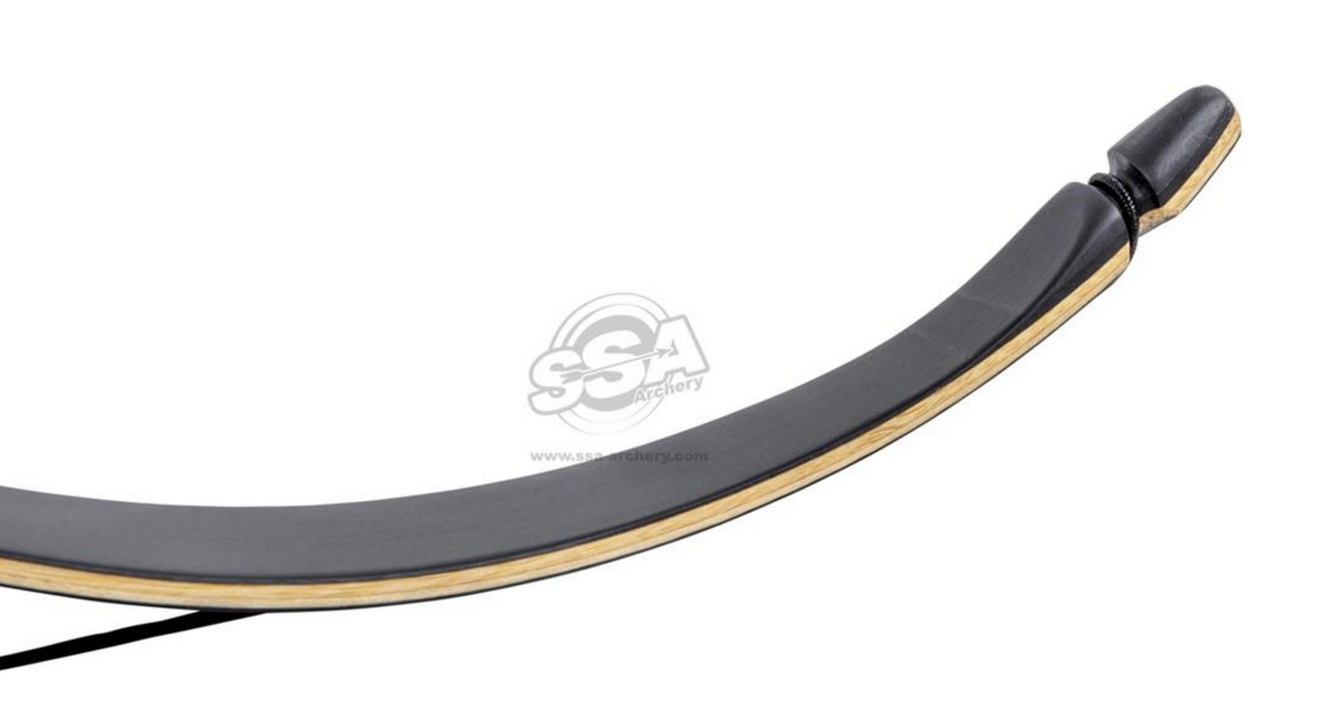 De dubbel gelamineerde bamboe werparmen zijn versterkt met zwarte glasvezel, waardoor deze boog zowel geschikt is voor gebruik in het veld als op de schietbaan.