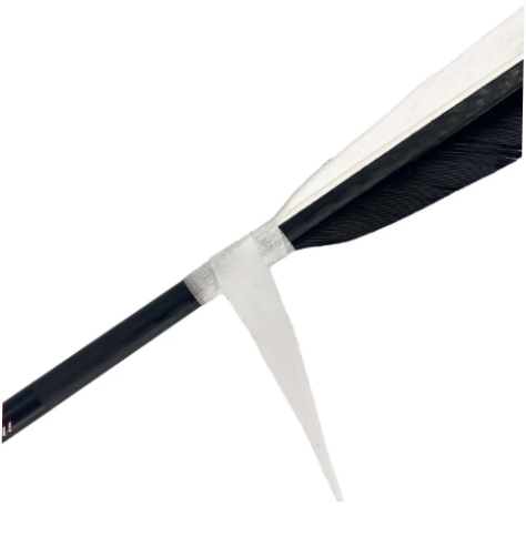 De uiteinden van de veren moeten worden voorzien van lijm of beschermd met wikkeltape of krimpkous. Dit minimaliseert het risico dat de veren losraken van de pijl of dat je je booghand pijnlijk verwondt tijdens het lossen.