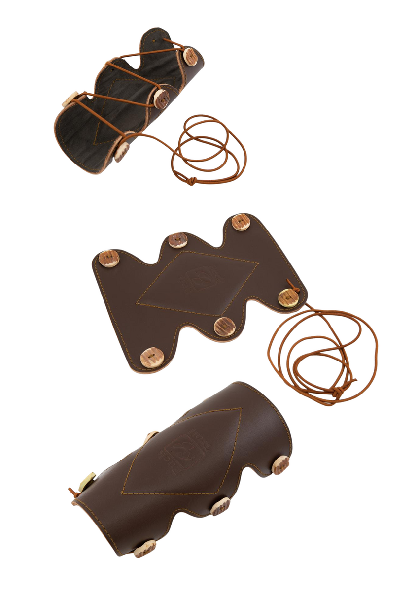 TRADITIONELE ARMBESCHERMERS Gewei knoop 20CM BRUIN LEDER Artikelnummer A053665 Traditionele armbeschermer van hoge kwaliteit van BT Archery. Echt bruin leer. Suède voering en demping voor een comfortabel en zacht gevoel. Zes hoornhaken. Lengte: 20cm.