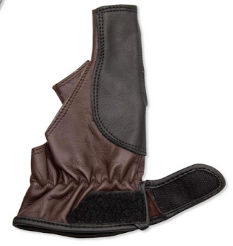 Afgebeelde handschoen is voor een rechtshandige schutter, dus voor aan de linker hand.