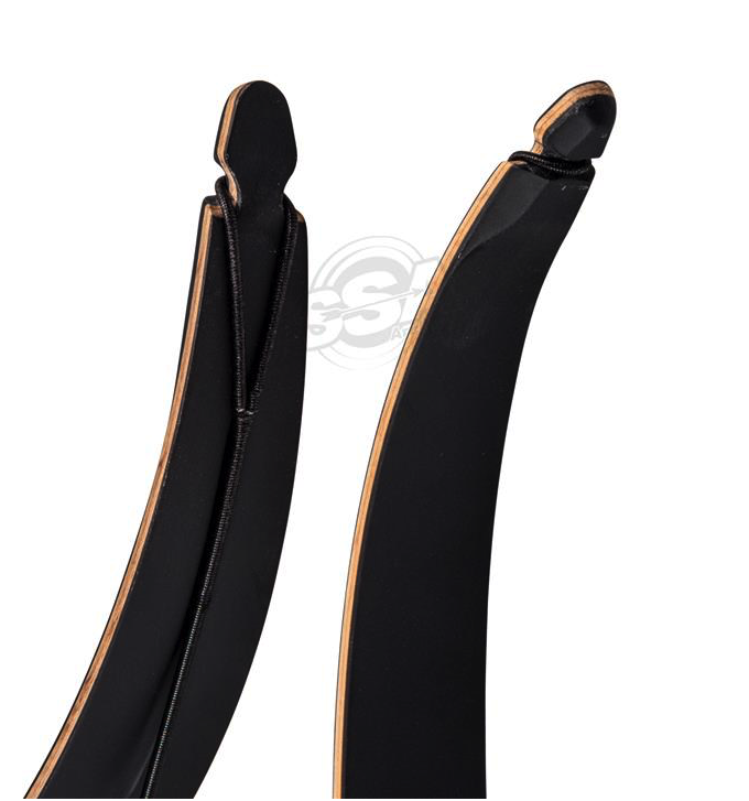 De micarta versterkte tips zorgt er voor dat je deze boog met een FastFlight pees kunt schieten, deze is inbegrepen.